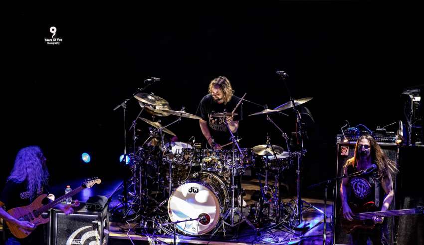 Stupid 7 – Straight off we are on the third album “Tres Caballeros”, well straight off we are in odd time, hence the title of the song, great riff that Marco is just dancing around, swirling time sigs, then into a much heavier rockier riff that drives then we stop into a quieter section with rimshots before the chaos starts again, there isn’t time to catch your breath, until the break with the bass part on its own and the buzz snare roll to bring the next section in where Guthrie can take a solo, this solo reminds me of Satch at the very start, always has since I heard it first, the other thing seeing these guys live is the smiling between the guys and they genuinely look like the love playing together, I’m going to say this a lot but is Guthrie the best guitarist on the planet, I have seen most of them in all genres and I mean it’s just scary, it’s so hard to catch it all live, from the little accents and stuff Marco is putting in to the bass parts Bryan is doing, I know the studio version well but live it’s so much more aggressive sounding and in your face! The crowd is loud, to say the least, great atmosphere in this place and so nice to see it absolutely packed to the rafters as well!