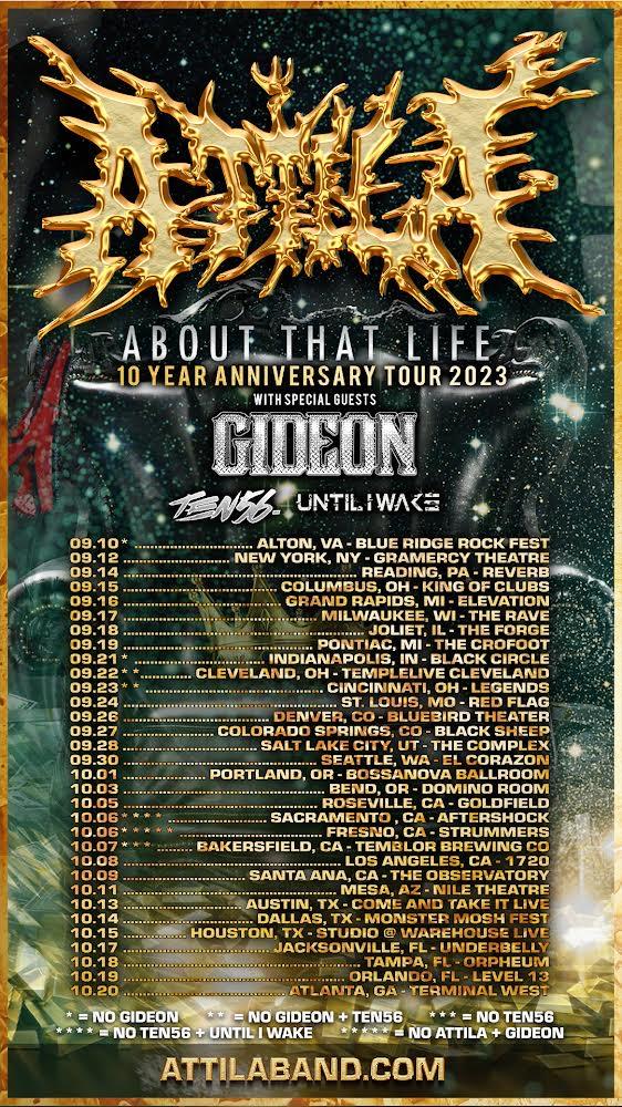 ATTILA are currently bringing the ruckus to cities across the US, celebrating the 10th Anniversary of their seminal album, ‘About That Life‘ by performing the album in full. The band are joined by Gideon, Ten56 and Until I Wake.