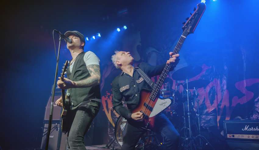 It’s back to ‘The Truth…’ with, ‘Punchline’, Wastell is off jumping around the stage as Wood is smiling at the audience. A start/stop riff is trading blows with Martini’s measured beats. Jepson is hitting all the notes, supported with some great harmonies, briefly slowing the pace before a Wood solo, fires it towards the finish. The crowd haven’t stopped bouncing yet and let out huge cheers as the track closes.