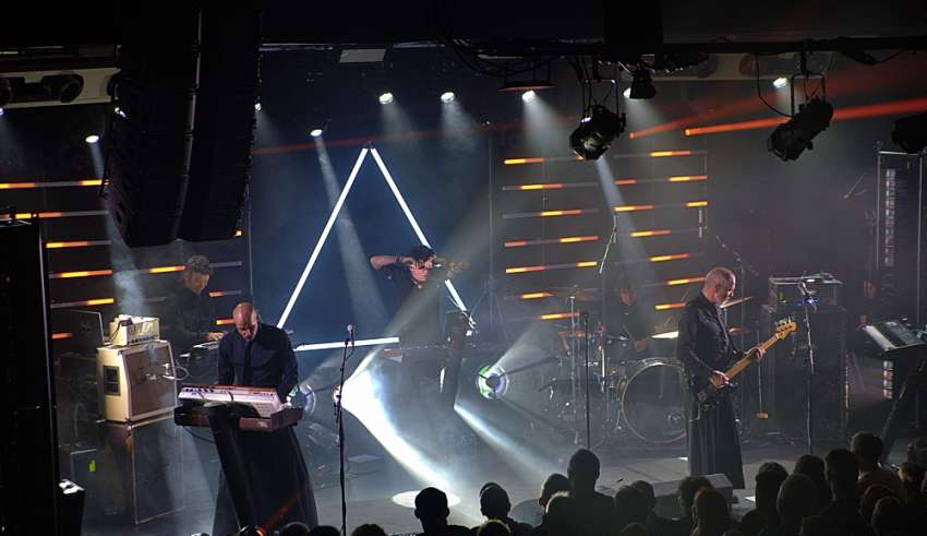 Chants of “Nuuuuum-aaaaan! Nuuuuum-aaaaan! Nuuuuum-aaaaan!” break out across the Tramshed as ‘curtains’ near and the expectation levels throughout the gathered Numanoids rises. An industrial barrage booms from the venue’s PA as stage techs skitter hither and tither. The lights darken and unseen banks of synths bring in the intro.