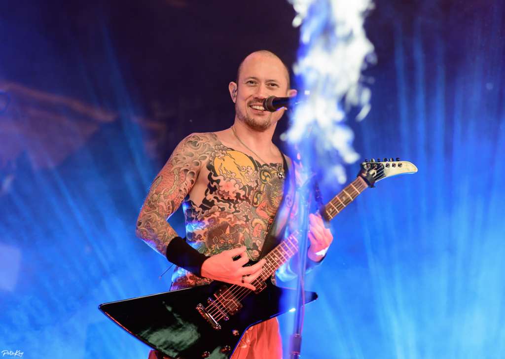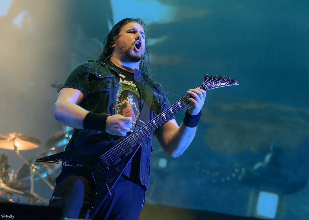The Bloodstock arena erupts with the pummelling riffs of ‘Rain’ and the track’s glorious ebb and flow. Frontman Matt Heafy – sole remaining founding member – encourages from the off. The arena complies to his “Jump, jump, jump!!” Like the assembled ranks the band are having the night of their lives too. Flames shoot to the increasingly dusky skies in the conflagrant fury of ‘Pull Harder on the Strings of Your Martyr’. “Open that shit up, open the circle” beckons Heafy as he goes, no doubt unwittingly, toe-to-toe with Cavalera in the ringmaster stakes.