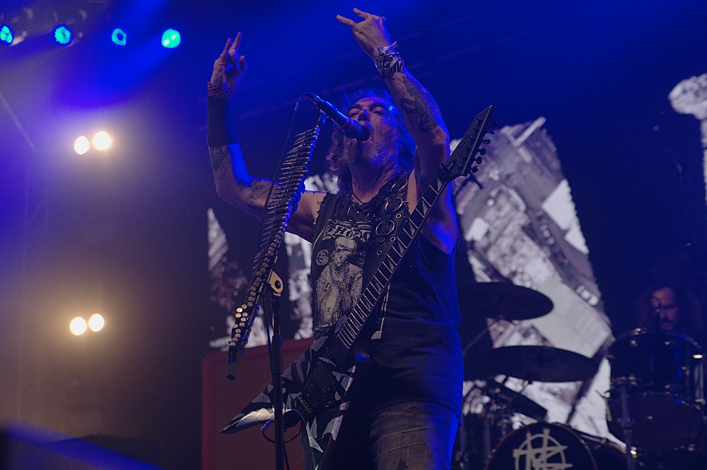 Given the time scheduled, it would be a nigh-on impossible task of herculean proportions to address all 15 albums in their back catalogue. If this were to be attempted this craggy thrash monster would still be here late into the Derbyshire night; thus, the first two songs ‘Hammerhead’ and ‘Iron Maiden’ give a subtle insight that this was to be an introspection divided between the early albums and those of more recent years. It all blends neatly together leaving a thirsting for more; let’s hope there’s not such a lengthy interim before the band’s next UK visit.