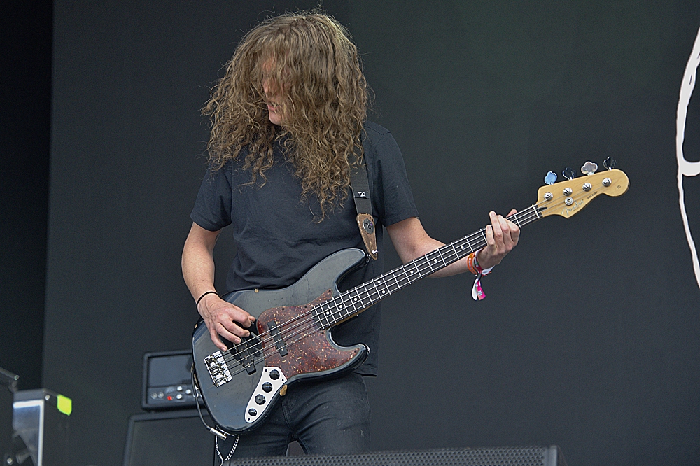 It’s an ungodly half past ten but Ofnus, bounding out of their South Wales headquarters, instantly winch the atmospherics upwards. Ethan Rees-Spargo’s drums tumble with the forces of an uncontrollable avalanche whilst bandmates Alyn Hunter, James Ponsford, and Richard Rees – rhythm guitar, lead guitar, and bass respectively – hit the stage hard to ensure parity. Someone has unmuzzled vocalist William Philpot mere moments before he is lobbed into the midst of the fray; to coin a phrase from Sheri, my fellow MPM reviewer, ‘this band slaps!’