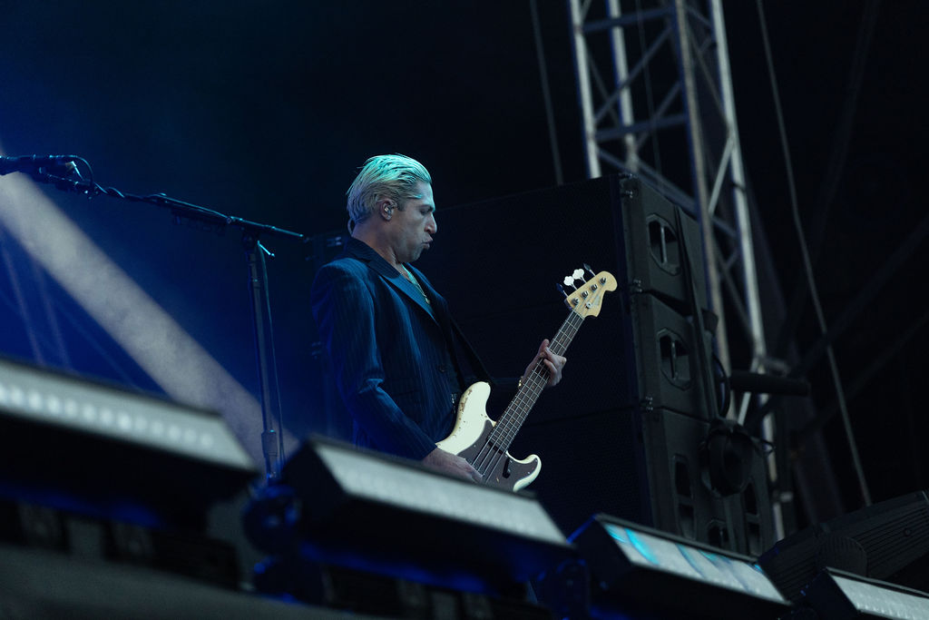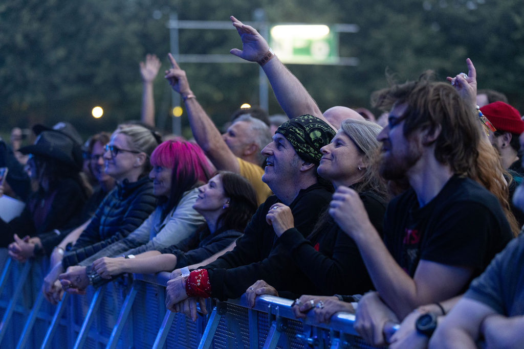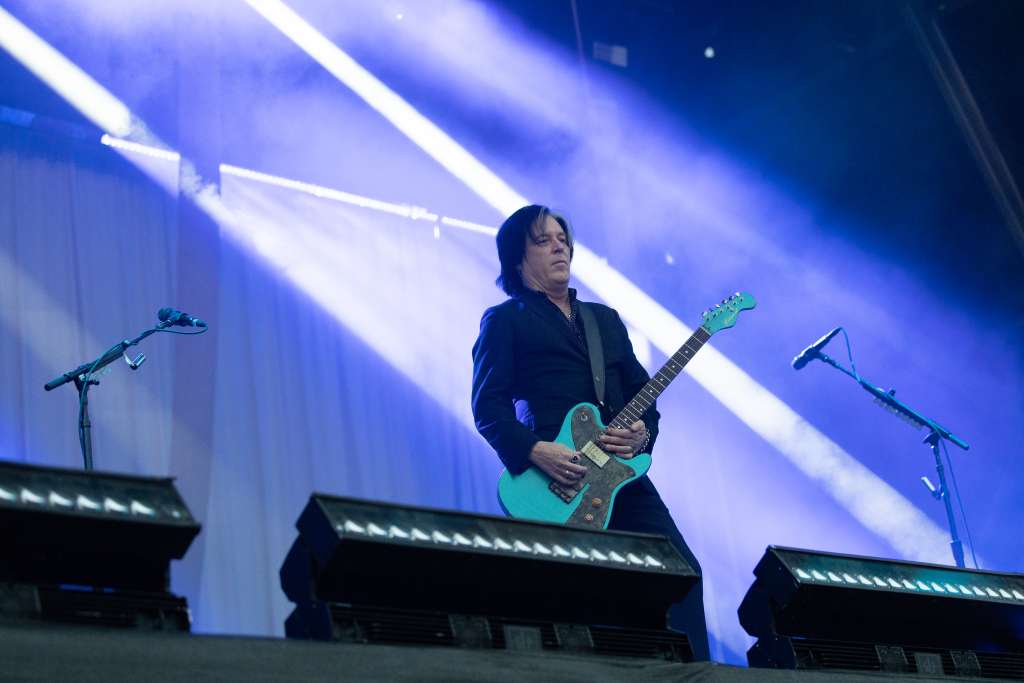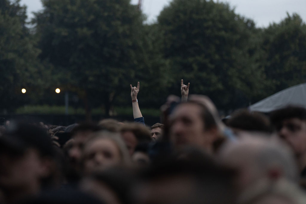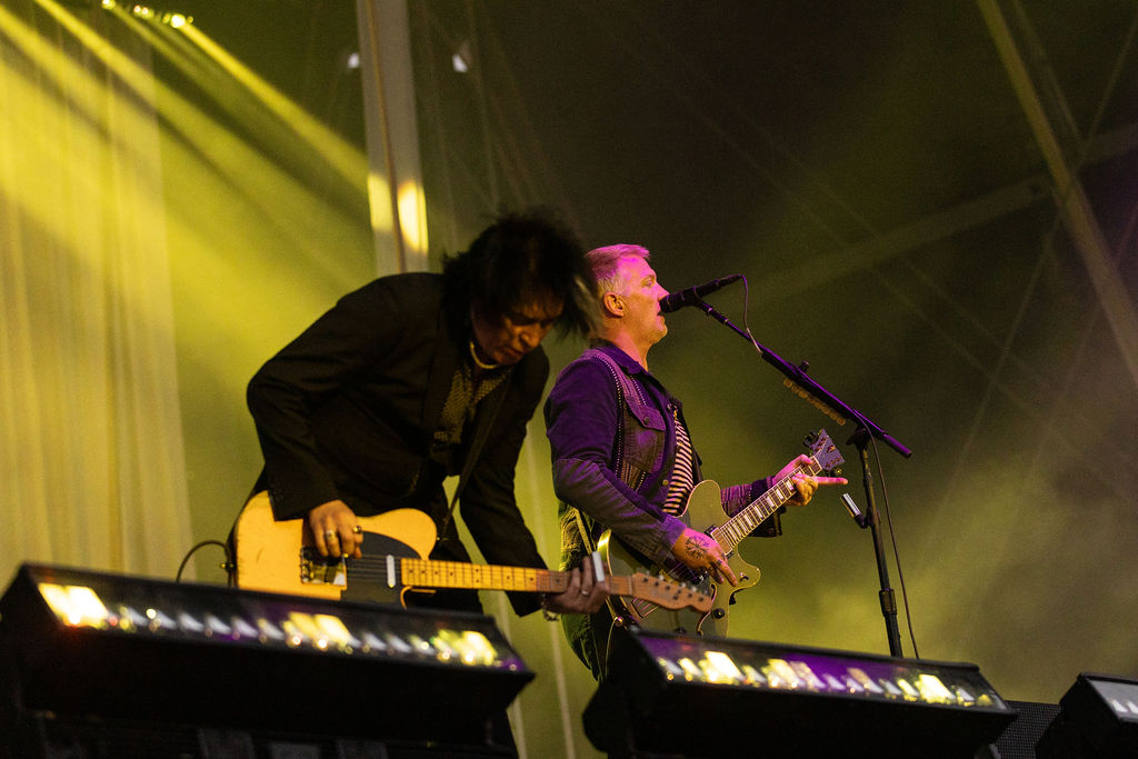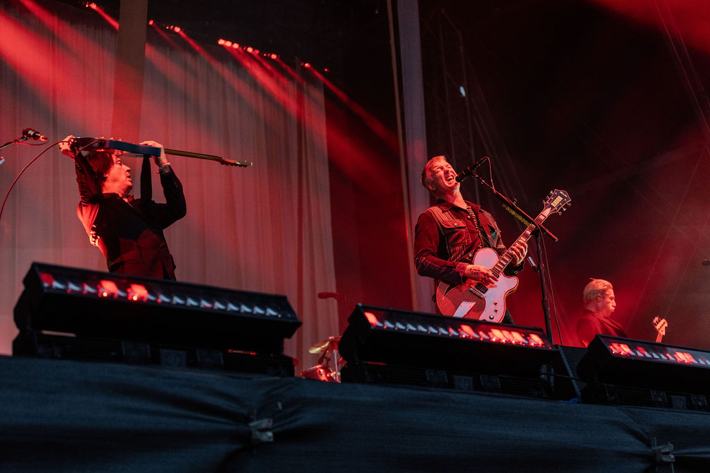 The excitement is contagious and spotted throughout the gathering are various Queens of the Stone Age t-shirts – we have found our tribe. Once inside the beautiful grounds the view of the city and local area is one to behold. There are various vendors and a few Merch stalls dotted around the standing area. We make our way through the crowds of people and find a favourable position, to prepare for what we already know will be a night of dancing and rocking out to the colossal QOTSA.