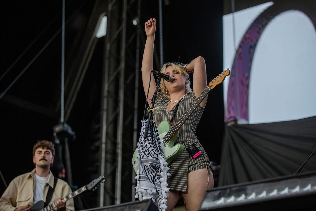 Cliffords are proud of their Irish heritage and are politically aware, often striving to raise awareness for issues close to their hearts including the disparity faced by female and non-binary artists in the industry. The band also expressed their support of Palestine and hung Palestine flags on their stage set up. Lynch reflected on the current situation faced by Liam Og O hAnnaidh of Kneecap, encouraging the crowd to see past the media cover-up and see the reality of what is happening in Palestine.