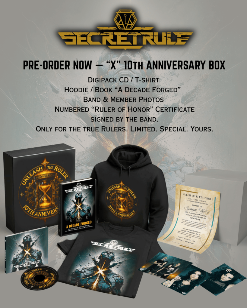 Secret Rule‘s upcoming album “X” celebrates their tenth anniversary with a bold and contemporary sound, blending modern metal intensity, symphonic textures and electronic experimentation. The album explores themes of collapse, resistance and rebirth—”Silent Pain” stands as one of its most intimate and cathartic moments.