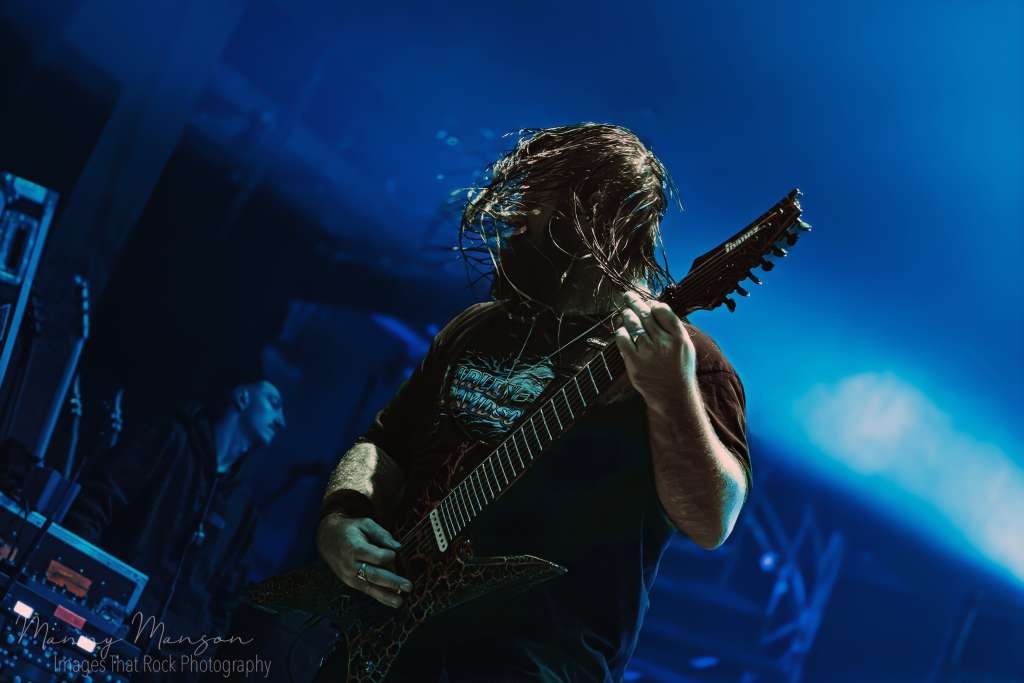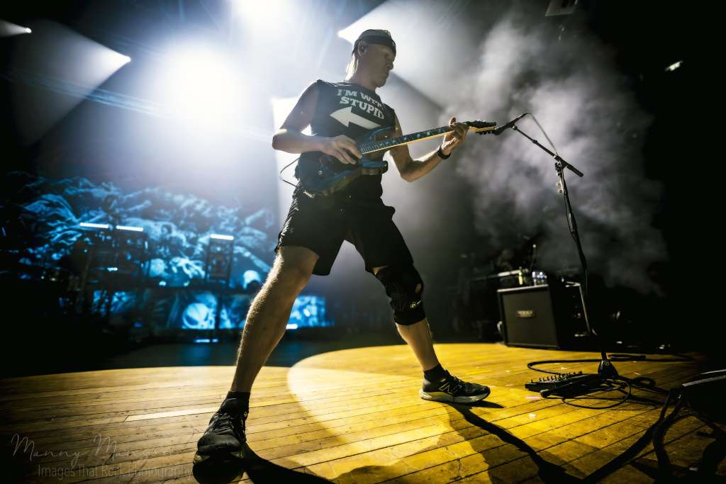 By “Hostage” from The Nothing That is, the band had fully claimed the stage. The interplay between guitarists Sheridan and Howley was mesmerising, riffs slicing, harmonics ringing, solos interweaving with relentless precision. Bass underlined the riffs with a low growl, percussion hitting like a mechanized heartbeat. Badolato foot on the wedges, leaning into the crowd at times, letting the fans’ own screams become part of the rhythm. The pit was now a churning, heaving organism, fuelled by adrenaline and fearlessness.