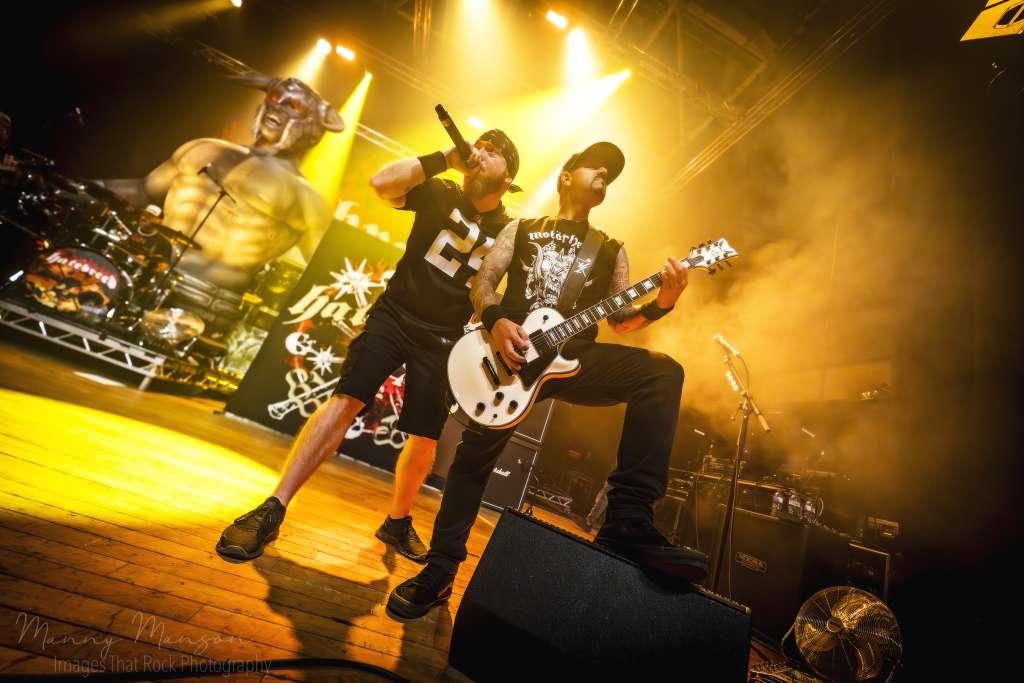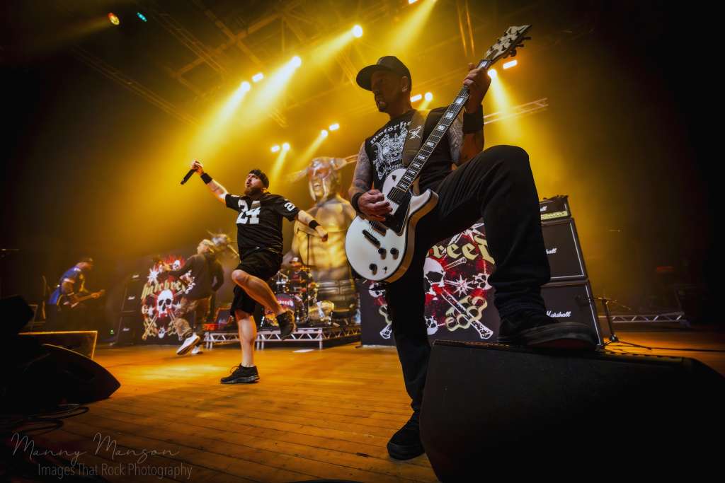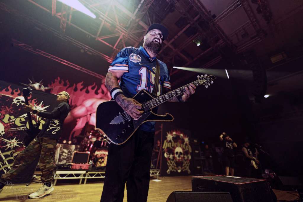 Then they appeared. Jasta front and centre, mic in hand, his presence a combination of predator and general, commanding the Hall’s with a single glance. Frank Novinec and Wayne Lozinak stood slightly to each side, guitars slung low, trading sharp, aggressive riffs that immediately sparked the pit into motion. Chris Schwartz on bass grounded the rhythm like a massive plinth, and Matt Byrne’s drums were thunder incarnate, every snare and kick punctuating the raw energy like artillery strikes.