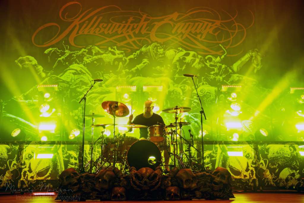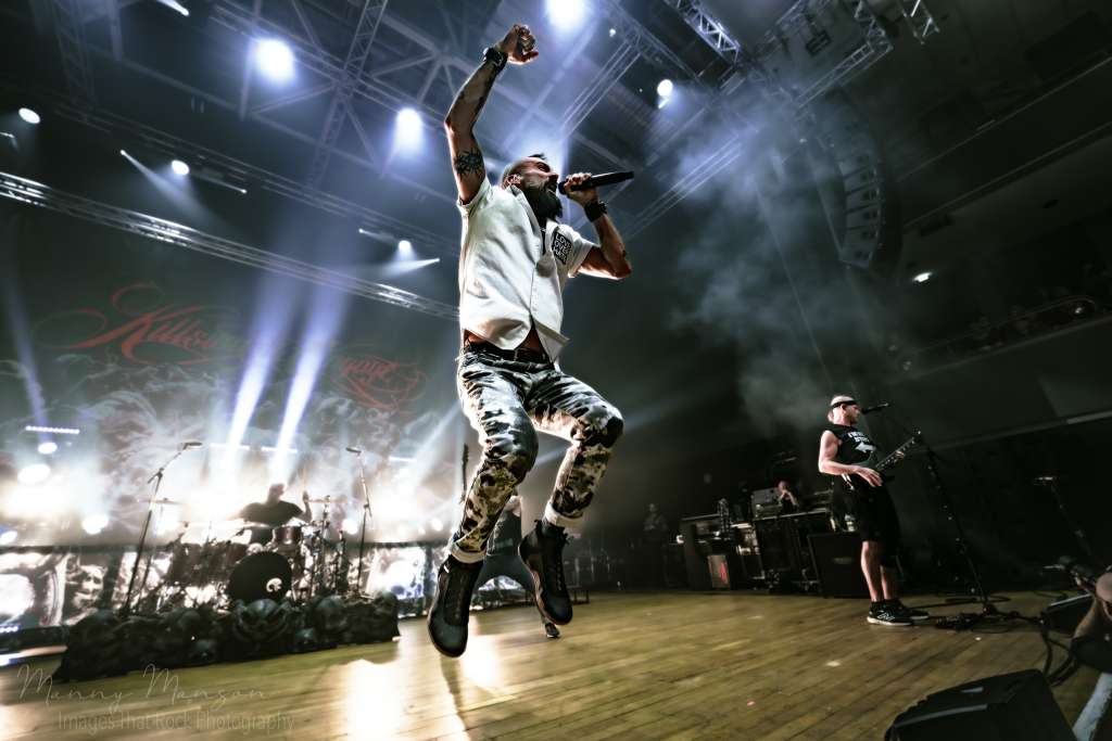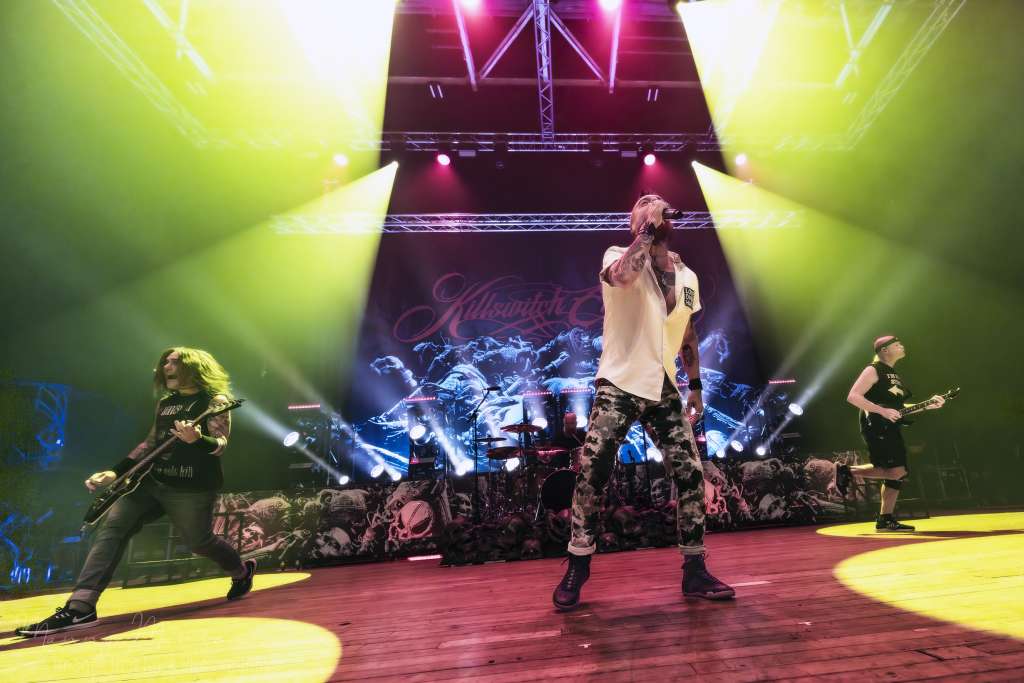 The last echoes of Hatebreed’s final chords hadn’t even faded before the Hall’s shifted. The air still thick with sweat and smoke, bodies still heaving from the pit, and then the first strains of Baba O’Riley, The Who’s iconic tape entrance song, crept through the speakers. The crowd erupted instantly, cheers and whistles bouncing off the walls, anticipation snapping like static in the air. Every fan knew what was coming: Killswitch Engage, the Massachusetts metalcore pioneers, stepping into the hall to claim the night.