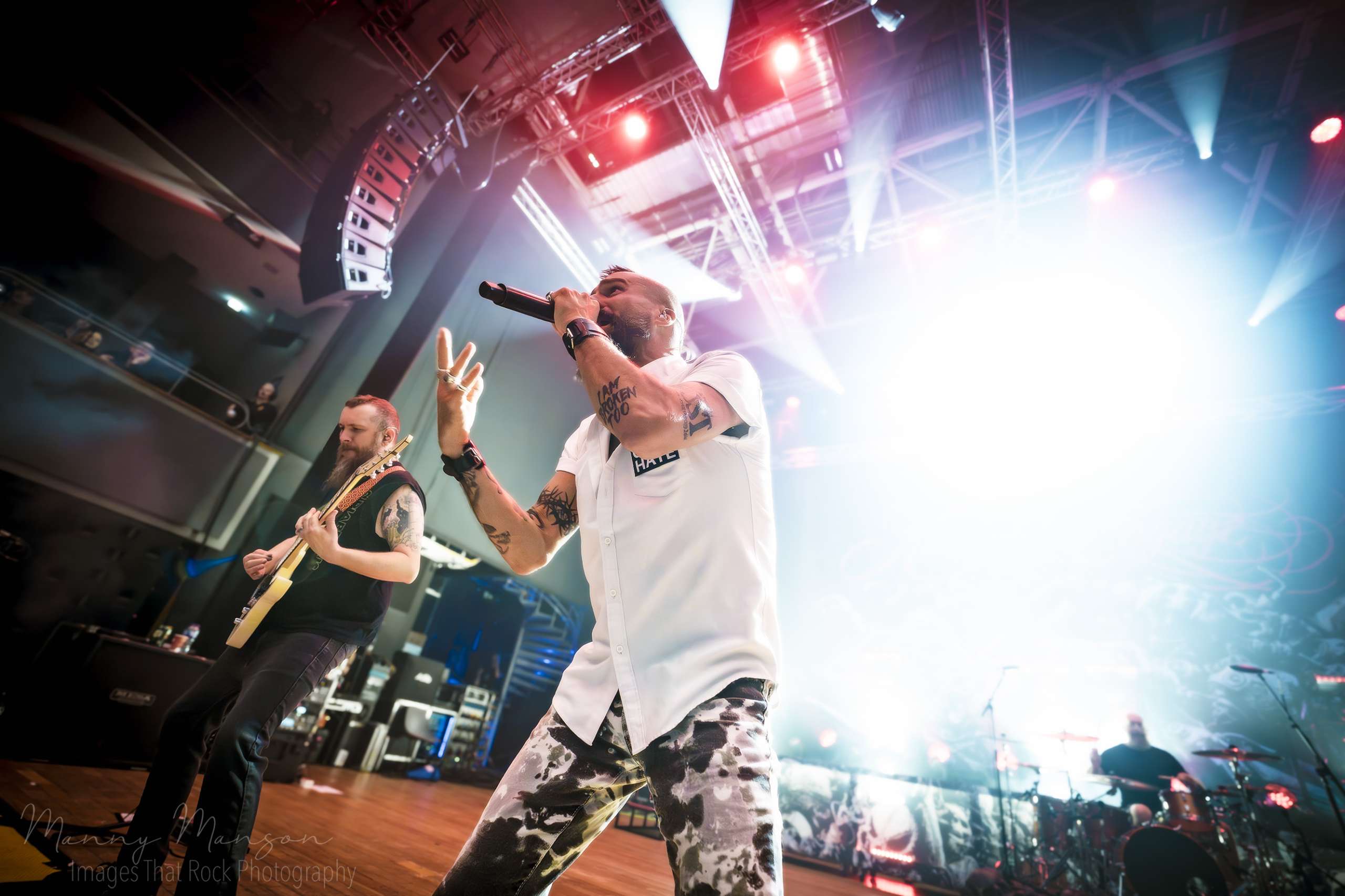 By “Perseverance”, (Perseverance), the stage and floor were fully alive. Jasta’s mic technique allowed him to guide the pit, dictating where bodies would surge next, leading breakdowns, letting the audience roar back every word. Frank and Wayne’s riffs cut sharply through smoke, Byrne’s snare hits punctuated the motion, and Beattie’s bass held the foundation under the chaos, a tether for the swirling energy.