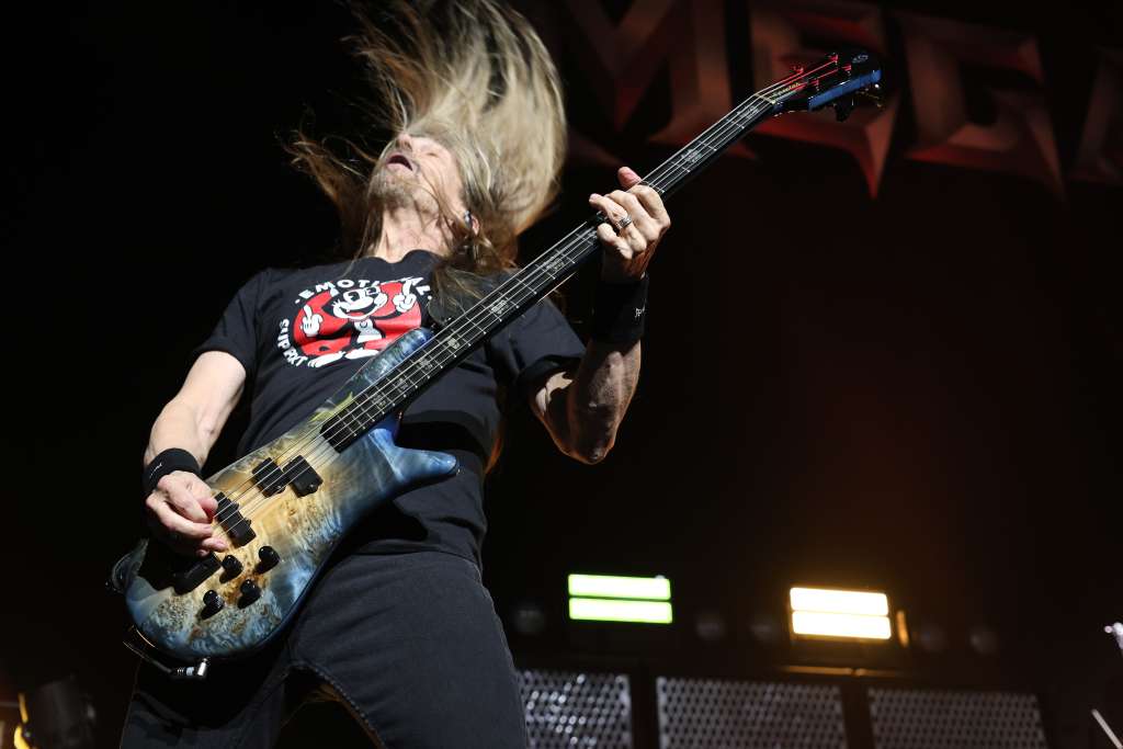 Nearing the end of the set, Lomenzo takes to the solo runway one last time, his echoing bass filling the arena with Peace Sells. It can’t be a Megadeth show without it. From the album of the same name, released in ’86, this track is now a solid 40 years old. It doesn’t age, it just gets louder. The crowd welcomes Vic Rattlehead to the stage as he interacts with each band member. Interestingly, he’s not animatronic, not a bloke on stilts.  This monster of a man is genuinely just a massive guy, dwarfing the band to the crowd’s delight. I’d already met a man mountain earlier today… could it be?