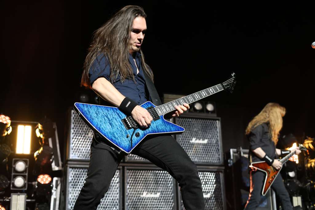 Skin O’ My Teeth ignites the crowd’s anticipation, and a sold-out arena erupts as Dave and his gang unleash those fretboard power chords into one of Megadeth’s most recognisable riffs. The sound is thunderous. While I try to focus my lens and get the right shot, my ears are getting bombarded by air-moving power. This latest Megadeth lineup is astonishingly precise and articulate. Within seconds, I’m honestly thinking this could be the best-sounding iteration of the band yet.
