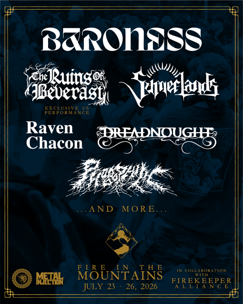 The second wave of artists to perform at Fire in the Mountains 2026 have been announced: progressive post-metal pioneers Baroness, atmospheric Black Metal band The Ruins of Beverast, heavy metal powerhouse Sumerlands, Diné composer and sound artist Raven Chacon, Denver progressive genre-defiers Dreadnought and Fargo death metal legion Phobophilic.