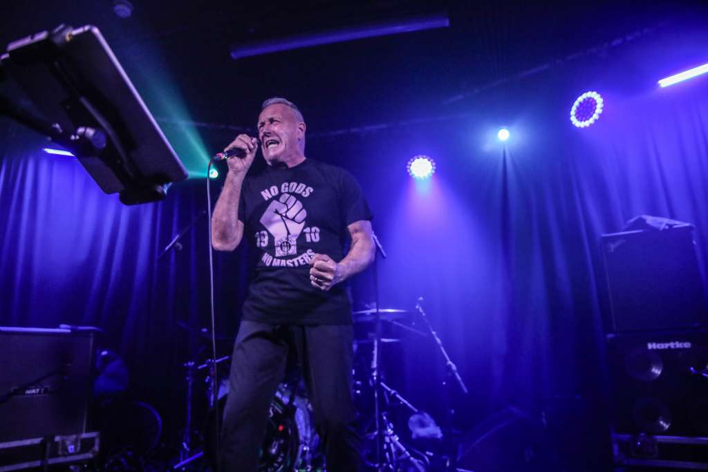 The delight of the crowd was quite palpable as Jobson lead a reprise of the song allowing us another opportunity to sing in unison as loudly as we could. Jobson seemed a bit emotional at the applause and just soaked up the atmosphere for a few seconds in silence. He then introduced “my favourite song that we ever recorded”, the evergreen crowd pleaser “Masquerade”. Sensing the end of the gig was near everyone on the floor stepped it up a gear to chant along happy as pigs in the you know what. There was barely time to catch breath when one of punk’s greatest openings sent Belfast into a frenzy, “Into the Valley”.
