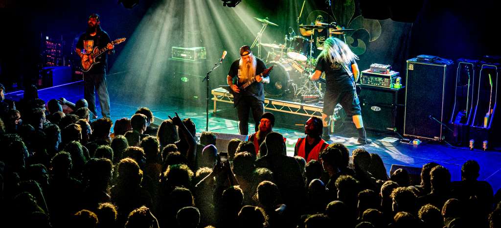 Upgraded three times, it’s evident that many aspects of metal music are in rude health. Less than three years ago, Crowbar played The Globe in Cardiff. A capacity of 350 (at a push). Two years ago, it was the 500 size Sin City in Swansea. Tonight, there isn’t enough room to slide a Rizla between those packed into the 1000+ cap venue.
