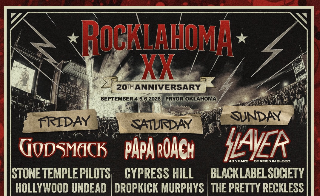“Oklahoma! We can’t wait to celebrate the 20th Anniversary of Rocklahoma with all of you on Friday, September 4 with a full lineup of pure ROCK!,” says Godsmack singer Sully Erna.