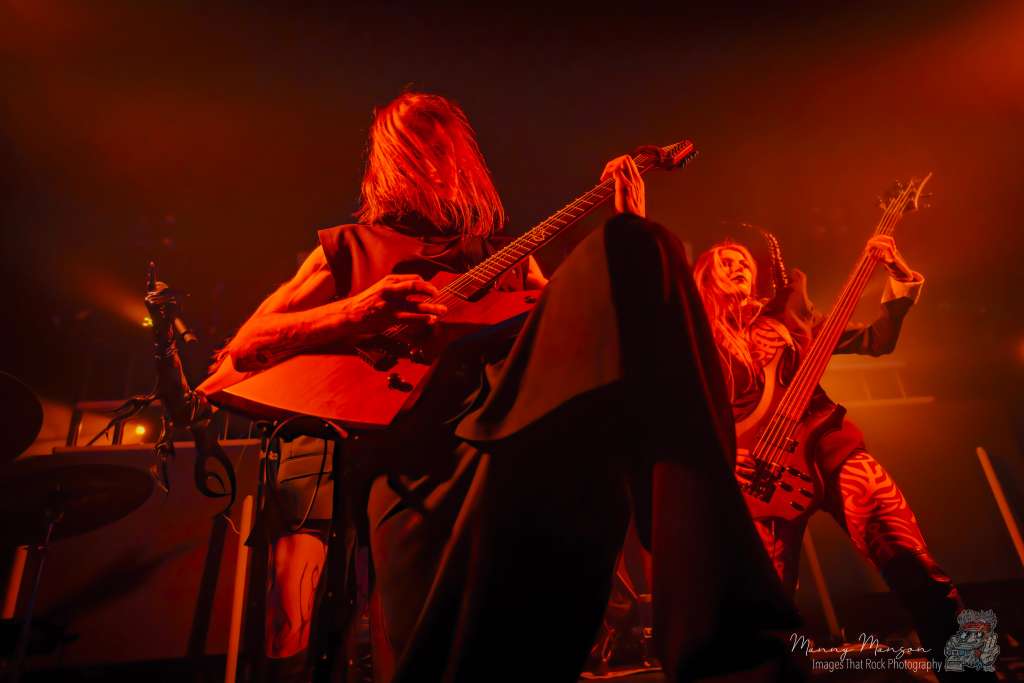 The dancer emerged again, now clad in a costume that seemed to flicker in the stage lights. Her movements were ritualistic, twisting and coiling, limbs arching and dropping in time with the percussion, their presence both mesmerizing and slightly unsettling. At one point, they moved across the front of the stage, interacting subtly with Yaga’s mask and cape, weaving the visual and musical tension together as the audience’s focus shifted seamlessly between the band and the performance.