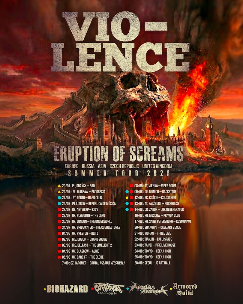 Vio-lence is set to return to the global stage with their Summer 2026 tour, “Eruption of Screams.” Kicking off on July 20 in Gdańsk and July 21 in Warsaw, Poland, opening for Biohazard.